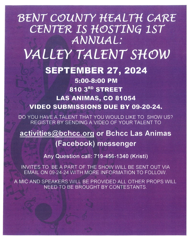 14th. For more information, contact Ariel Eddings at the Bent County Extension Office at